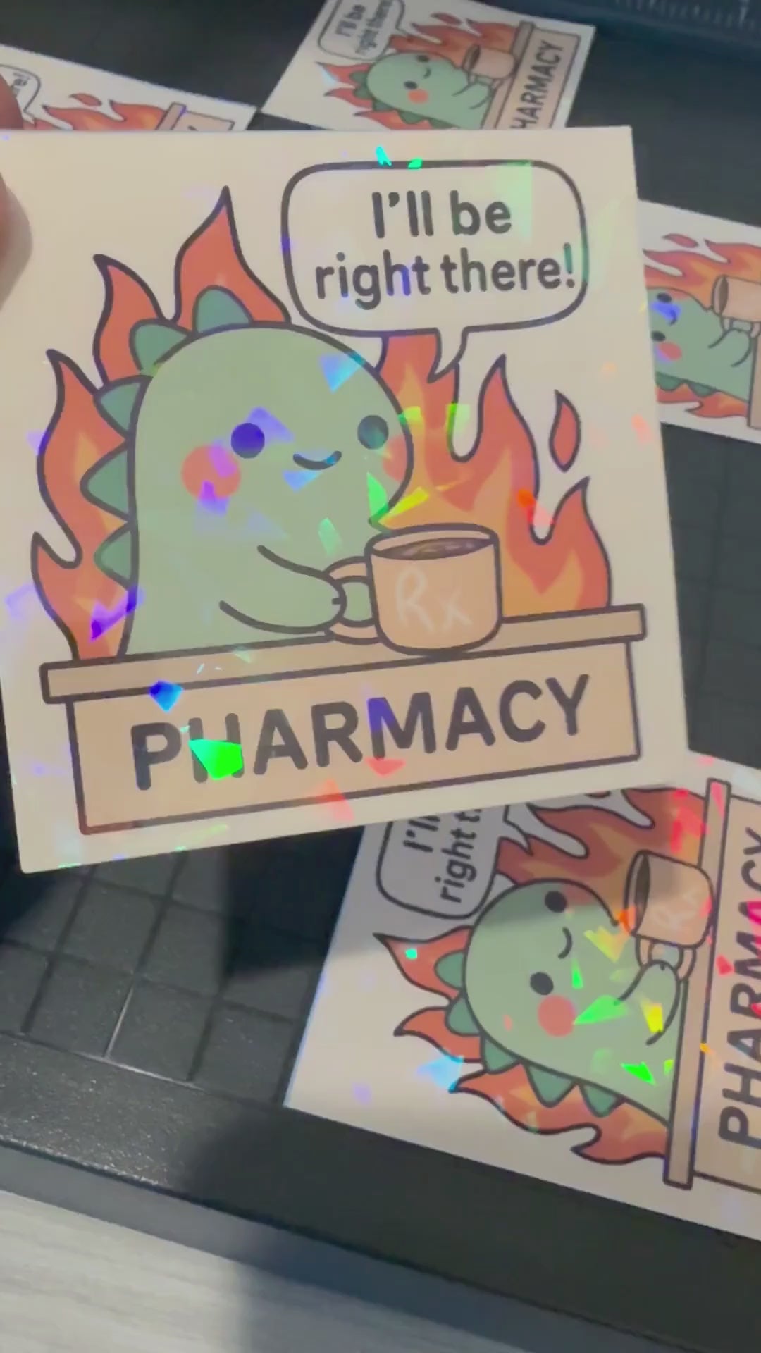 The “I'll be right there” Pharmacy sticker speaks to those hectic pharmacy days filled with printer jams, a stack of leaflets, nonstop calls, and endless customer lines. It captures that moment when everything feels like it’s burning down, and you need to pause what you're doing to jump in and help out.